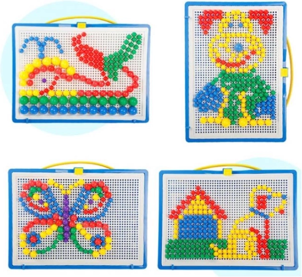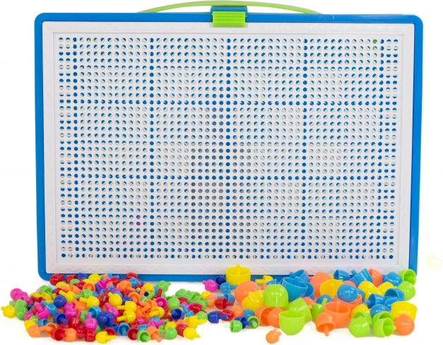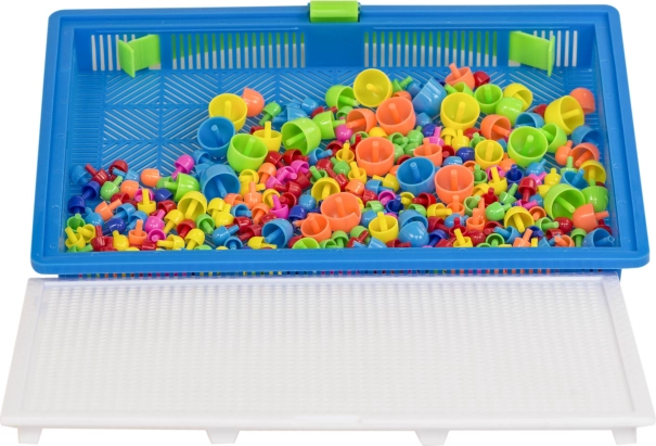 Αυτό το παιχνίδι είναι αγαπημένο από γενιές παιδιών και προκαλεί νοσταλγία στους ενήλικες. Απλή κατασκευή που αποτελείται από πολύχρωμα πλαστικά καρφάκια διαφόρων μεγεθών και μια διάτρητη βάση για την τοποθέτησή τους. Όλα φυλάσσονται σε πρακτικό βαλιτσάκι, ώστε το παιδί σας να μπορεί να πάρει το αγαπημένο του παιχνίδι παντού.