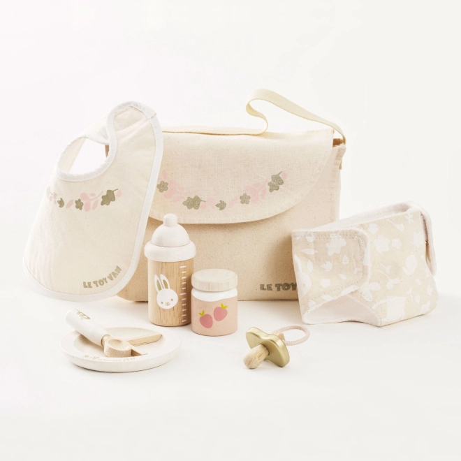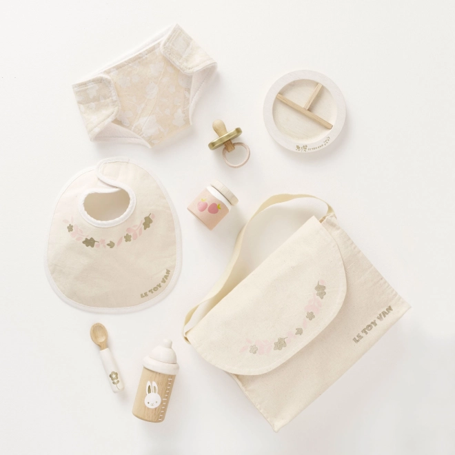 Η φροντίδα κουκλών και λούτρινων δεν ήταν ποτέ τόσο διασκεδαστική και εμπνευσμένη. Το σετ φροντίδας Le Toy Van προσφέρει πλήρη εξοπλισμό για μικρούς φροντιστές. Περιλαμβάνει υφασμάτινη τσάντα αλλαξιέρας με διακοσμητικό μοτίβο, πιπίλα, σαλιάρα, πάνα, πιάτο, κουτάλι, κρέμα/πουρέ και μπιμπερό. Κάθε κομμάτι είναι φτιαγμένο με έμφαση στη βιωσιμότητα και την ποιότητα, ώστε να αντέχει πολλές ώρες παιχνιδιού.