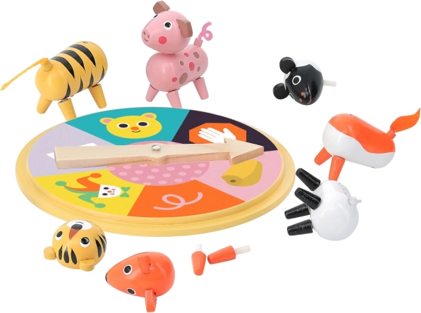Ο τροχός της τύχης φέρνει στο παιχνίδι στοιχείο τύχης και αγωνίας, καθώς κάθε παίκτης συναρμολογεί σταδιακά το ζώο του ανάλογα με αυτό που θα τύχει. Ιδανική δυναμική για παιδιά!