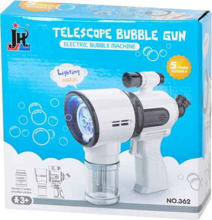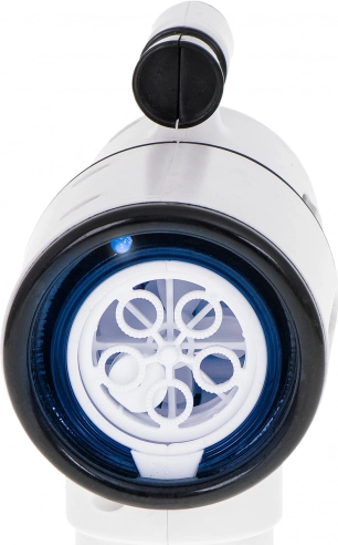 Αυτό το λευκό πιστόλι σαπουνόφουσκων είναι ιδανικό για παιδιά από 3 ετών και για οικογενειακές υπαίθριες δραστηριότητες. Ο ενσωματωμένος ανεμιστήρας και το σύστημα με 5 δακτυλίους εξασφαλίζουν ομαλό φύσημα και ροή δεκάδων έως εκατοντάδων φουσκών με ένα πάτημα της σκανδάλης. Για περισσότερη διασκέδαση, δεν λείπουν ο LED φωτισμός και οι ήχοι, που ενεργοποιούνται ή απενεργοποιούνται με ένα κουμπί.