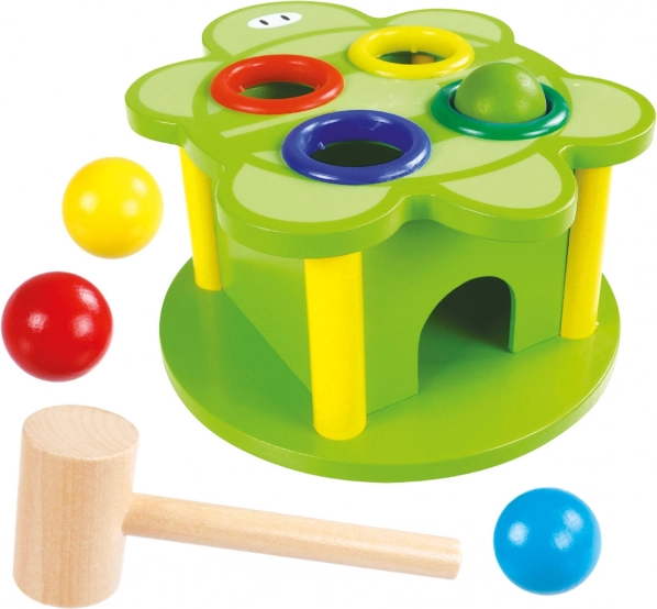 Διασκεδαστικό ξύλινο σφυράκι σε σχήμα χελώνας με 4 χρωματιστές μπαλίτσες, που υποστηρίζει στα παιδιά τη λεπτή κινητικότητα, τον συντονισμό χεριού–ματιού και την αναγνώριση χρωμάτων. Ανθεκτική κατασκευή από μασίφ ξύλο που αντέχει χρόνια παιχνιδιού και είναι εξαιρετική επιλογή ως δώρο για παιδιά από 3 ετών.