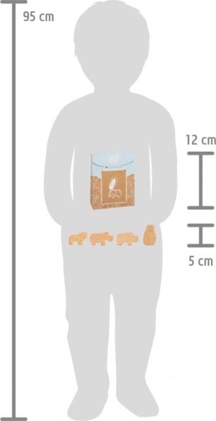 Αυτή η συλλογή από οκτώ ανθεκτικά ξύλινα μπισκότα μιμείται άψογα τα σχήματα και τις λεπτομέρειες ζώων της σαβάνας. Σε κάθε συσκευασία θα βρείτε 2 λιοντάρια, 2 μαϊμούδες, 2 ρινόκερους και 2 ελέφαντες, των οποίων η φυσική όψη σίγουρα θα μαγέψει τους μικρούς εξερευνητές. Τα μπισκότα είναι συσκευασμένα σε στιβαρό χάρτινο κουτί, που ανοίγει και κλείνει εύκολα, και θα εμπλουτίσει κάθε παιδικό μανάβικο ή κουζινάκι.