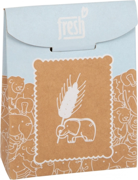 Τα μπισκότα είναι συσκευασμένα σε οικολογικό χαρτόνι με όμορφο και ελκυστικό σχεδιασμό, που ανοίγει και κλείνει εύκολα.
