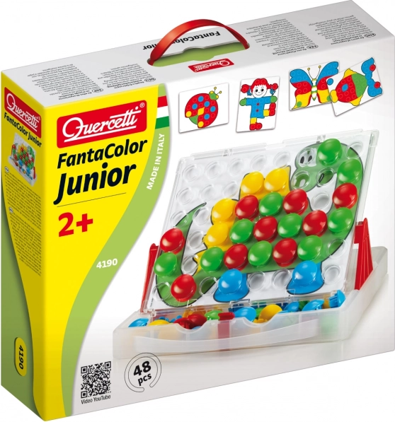 Ανακαλύψτε το δημιουργικό μωσαϊκό QUERCETTI FANTACOLOR JUNIOR, που καλλιεργεί τη φαντασία των παιδιών και τη λεπτή κινητικότητα. Χάρη στα μεγάλα καρφάκια τα παιδιά χειρίζονται εύκολα τα κομμάτια, το πρακτικό βαλιτσάκι κρατάει τα πάντα τακτοποιημένα και 8 διπλής όψης πρότυπα εμπνέουν για δημιουργία. Το παιχνίδι υποστηρίζει το αναγνώριση χρωμάτων, τον συντονισμό χεριού–ματιού, τη συγκέντρωση και την υπομονή.