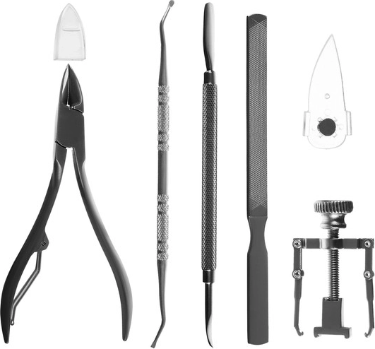 Κομψό σετ για εισφρυώντες νύχια που προσφέρει αποτελεσματική και ανώδυνη λύση για διόρθωση των νυχιών. Περιλαμβάνει έξι επαγγελματικά εργαλεία σε κομψή συσκευασία για εύκολη φροντίδα όμορφων νυχιών, στο σπίτι ή στα ταξίδια.