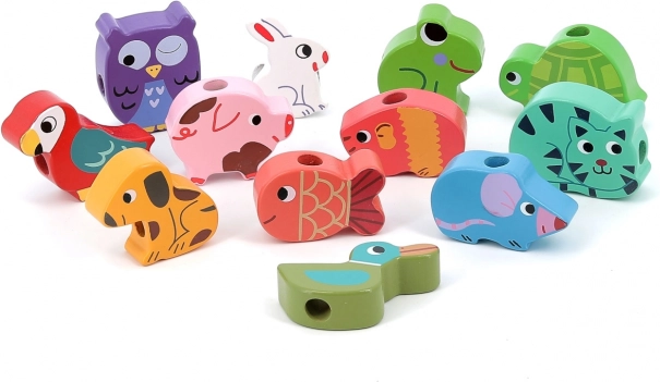 Η κλωστή ενισχύει τη δημιουργικότητα και τη λεπτή κινητικότητα, καθώς τα παιδιά περνούν τις ζωόμορφες χάντρες στο κορδόνι.