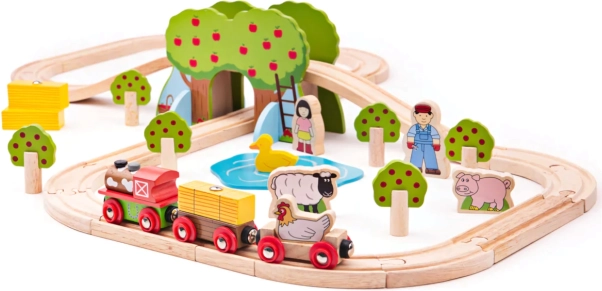 Ανακαλύψτε τη μαγεία της φάρμας με αυτή τη ξύλινη σιδηροδρομική γραμμή από τη Bigjigs Rail. Συνδυάζει ποιοτικά και υπεύθυνα προερχόμενα φυσικά υλικά, τα οποία ανταποκρίνονται στα σύγχρονα ευρωπαϊκά πρότυπα ασφαλείας.
