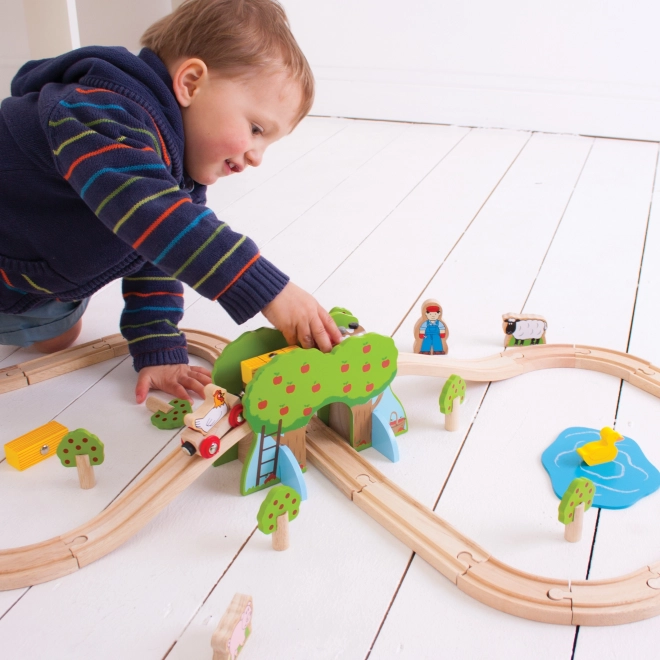 Αυτή η όμορφη ξύλινη σιδηροδρομική γραμμή με θέμα τη φάρμα από τη Bigjigs Rail περιλαμβάνει 45 κομμάτια και περιέχει φιγούρες ανθρώπων, ζώα και δέντρα. Ενισχύει τη φαντασία και τον συντονισμό και είναι κατασκευασμένη από υπεύθυνα προερχόμενα φυσικά υλικά.