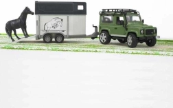 Το ρυμουλκούμενο για άλογα είναι εξοπλισμένο με πίσω ράμπα και ανοιγόμενες πίσω και πλαϊνές πόρτες, ώστε η φόρτωση και η εκφόρτωση του αλόγου να είναι παιχνιδάκι. Ολόκληρο το σετ είναι κατασκευασμένο από ποιοτικό πλαστικό και, χάρη στην κλίμακα 1:16, ταιριάζει άψογα με άλλα μοντέλα BRUDER.