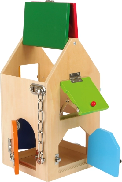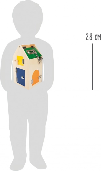Το κινητικό σπιτάκι με κλειδαριές small foot είναι ένα έξυπνο διδακτικό παιχνίδι που επιτρέπει με ασφάλεια στα παιδιά από 3 ετών να εξερευνήσουν τον κόσμο των κλεισιμάτων και των μηχανικών στοιχείων. Κάθε πορτάκι κρύβει μια διαφορετική πρόκληση – από κλειδαριά τύπου U και κυλινδρική κλειδαριά, μέχρι διάφορες βίδες και μοχλούς, καθώς και μεντεσέδες και αλυσίδα ασφαλείας. Έτσι, αναπτύσσει φυσικά τον συντονισμό χεριού–ματιού, την υπομονή και τη συγκέντρωση.