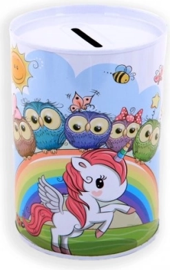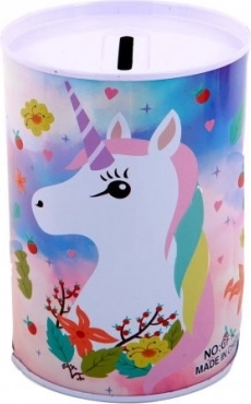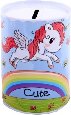 Αυτός ο μεταλλικός κουμπαράς με θέμα μονόκερο είναι ιδανικός για παιδιά που θέλουν να αρχίσουν να αποταμιεύουν χρήματα για το αγαπημένο τους παιχνίδι. Ξεχωρίζει για τον διακοσμητικό του σχεδιασμό και το πρακτικό άνοιγμα στο επάνω μέρος για την εισαγωγή κερμάτων.