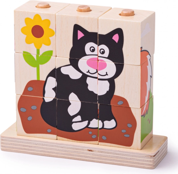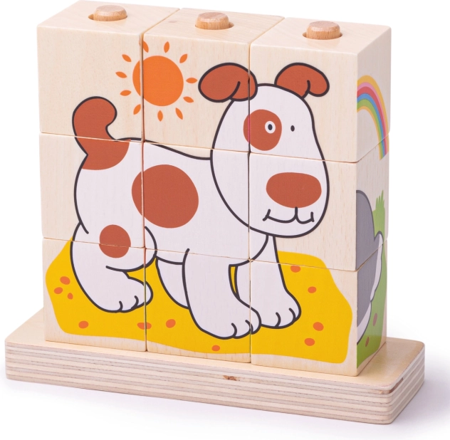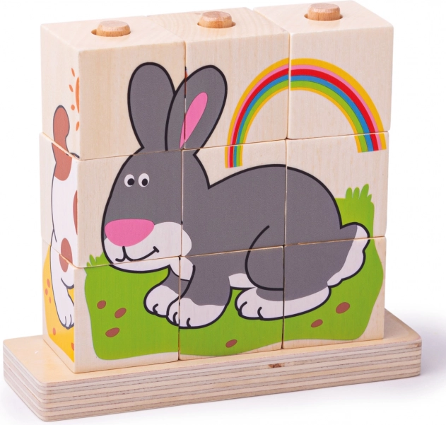 Εννέα κύβοι συνθέτουν τέσσερα διαφορετικά μοτίβα με ζωάκια, που προσκαλούν σε επαναλαμβανόμενο παιχνίδι και υποστηρίζουν τη λογική σκέψη και την οπτική αντίληψη.