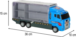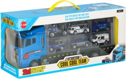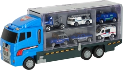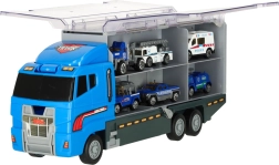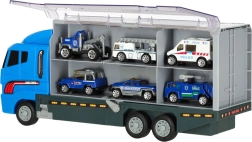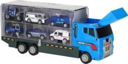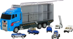 Το μεγάλο μπλε φορτηγό συνδυάζει λειτουργία αποθήκευσης με δυνατότητα παιχνιδιού. Επιτρέπει τη μεταφορά έως και 14 μικρών μεταλλικών αυτοκινήτων, τα οποία περιλαμβάνονται στη συσκευασία. Τα αυτοκινητάκια μιμούνται ρεαλιστικά πραγματικά αστυνομικά και οχήματα έκτακτης ανάγκης. Το φορτηγό έχει δύο πλευρές με διάφανες πόρτες και ασφαλείς κλειδαριές, διασφαλίζοντας ότι τα αυτοκινητάκια δεν πέφτουν κατά την κίνηση. Περιλαμβάνει επίσης εκτοξευτή αυτοκινήτων στο μπροστινό μέρος, που προσθέτει μια επιπλέον διάσταση στο παιχνίδι.