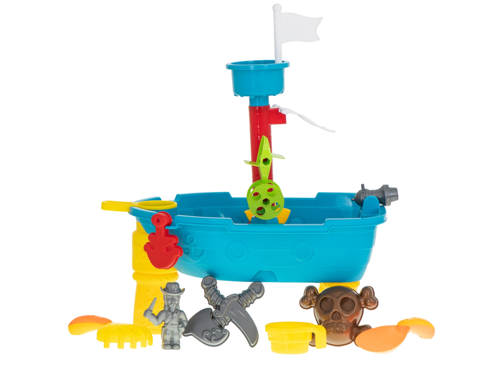 Παρουσιάζουμε το πειρατικό παιχνιδότραπέζι πλοίου, που μετατρέπει κάθε παιχνίδι σε μια συναρπαστική περιπέτεια στην ανοιχτή θάλασσα. Τα παιδιά θα απολαύσουν όχι μόνο παιχνίδι με νερό και άμμο, αλλά και άφθονη φαντασία και έμπνευση χάρη στα πλούσια αξεσουάρ.