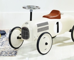 Στιλάτο παιδικό ποδηλατάκι ισορροπίας σε εμφάνιση αγωνιστικού αυτοκινήτου, που εντυπωσιάζει με ρετρό γοητεία και ποιοτική μεταλλική κατασκευή. Προσφέρει αθόρυβη κίνηση χάρη στους λαστιχένιους τροχούς, εύκολο χειρισμό με τιμόνι και ανθεκτική κατασκευή με μέγιστο φορτίο 20 kg – ιδανικό για μικρούς οδηγούς από 1,5 ετών.