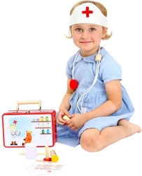 Τα παιδιά θα λατρέψουν το ξύλινο ιατρικό βαλιτσάκι, που ενισχύει τη δημιουργικότητα και τις κοινωνικές τους δεξιότητες. Αυτό το σετ προσφέρει μια εξαιρετική ευκαιρία για παιχνίδι γιατρού, βοηθώντας στην ανάπτυξη των γλωσσικών και κοινωνικών ικανοτήτων του παιδιού.