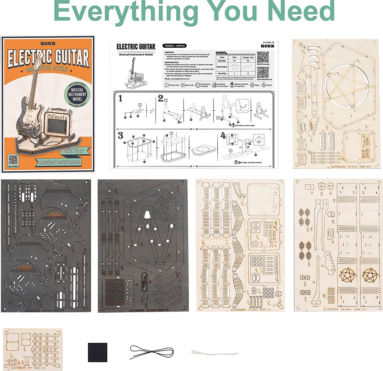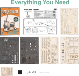 Το σετ περιλαμβάνει 140 κομμάτια με χαμηλή δυσκολία, ιδανικό επομένως για αρχάριους και μεγαλύτερα παιδιά. Χάρη στις σαφείς οδηγίες θα συναρμολογήσετε την κιθάρα σε περίπου 1,5 ώρα. Το αποτέλεσμα είναι ένα ρεαλιστικό μοντέλο ηλεκτρικής κιθάρας με ενισχυτή, ένα υπέροχο δώρο για τους φίλους της μουσικής.