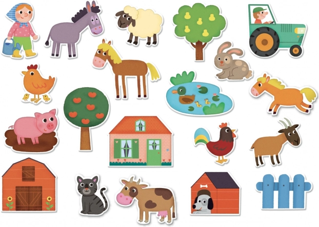 Αυτό το δημοφιλές σετ προσφέρει στα παιδιά μια διασκεδαστική γνωριμία με τη ζωή στη φάρμα. Τα ξύλινα μαγνητάκια είναι στιβαρά, ευχάριστα στο κράτημα και χάρη στην ποιοτική εκτύπωση είναι όμορφα πολύχρωμα. Ταιριάζουν για ελεύθερο παιχνίδι, αφήγηση ιστοριών και τα πρώτα βήματα γνωριμίας με τα ζωάκια.