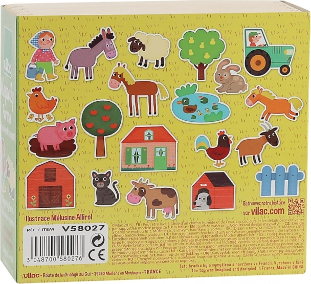 Τα παιχνίδια VILAC φέρουν τη σήμανση της γαλλικής υπηρεσίας ADEME – κατασκευάζονται οικολογικά και με σεβασμό στη φύση. Δεν επιβαρύνουν το έδαφος, το νερό ή τον αέρα και εξοικονομούν ενέργεια. Τα μαγνητάκια προσκολλώνται εύκολα στο ψυγείο ή σε μαγνητικό πίνακα και οι διαστάσεις τους είναι προσαρμοσμένες στα παιδικά χεράκια.