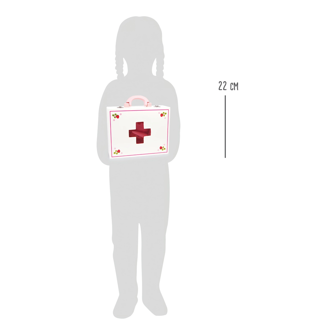 Αυτό το ποιοτικό ξύλινο ιατρικό βαλιτσάκι Small Foot Isabel είναι ιδανικό για παιδικά παιχνίδια ρόλων. Το σετ περιλαμβάνει 24 κομμάτια αξεσουάρ, μεταξύ των οποίων υφασμάτινη κορδέλα κεφαλιού με κόκκινο σταυρό και πολύχρωμα ιατρικά εργαλεία με μοτίβο φράουλας που θα ενθουσιάσουν κάθε παιδί.