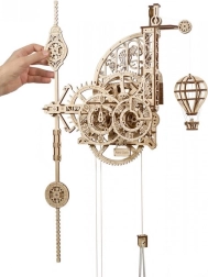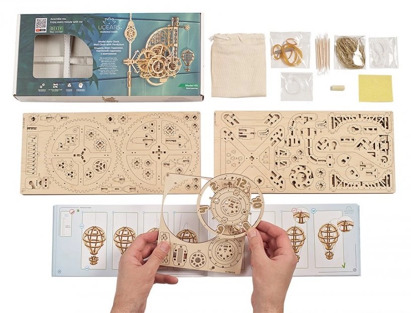 Το Ugears Aero είναι ένα επιτοίχιο μηχανικό ρολόι από ποιοτική κόντρα πλακέ, που συναρμολογείτε μόνοι σας χωρίς κόλλα. Η συναρπαστική θέα στον αποκαλυμμένο μηχανισμό ρολογιού με εκκρεμές και αντίβαρο προσφέρει μια μοναδική εμπειρία ακριβούς μηχανικής. Τον χρόνο τον διαβάζετε από ζεύγος καντράν που περιστρέφονται αντίθετα από τη φορά των δεικτών, ενώ το διακοσμητικό μοντέλο αερόστατου ανυψώνεται τακτικά και σε κάθε ακέραιη ώρα υπενθυμίζει με πτώση.