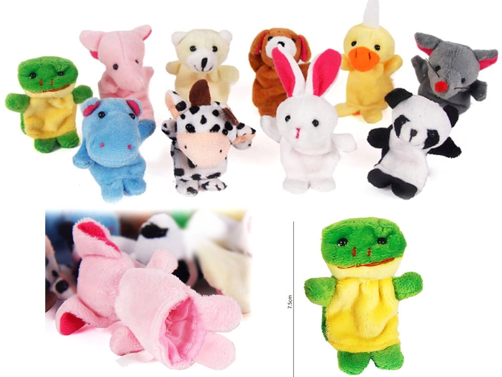 Στη συσκευασία θα βρείτε αγαπημένα ζωάκια: ιπποπόταμο, ποντικάκι, σκυλάκι, αρκουδάκι, βατραχάκι, ελεφαντάκι, αγελαδίτσα, πάντα, κουνελάκι και παπάκι. Χάρη στο συμπαγές μέγεθος, οι κούκλες εφαρμόζουν εύκολα στο δάχτυλο και είναι ιδανικές για το ταξίδι, τον παιδικό σταθμό και το σπίτι.