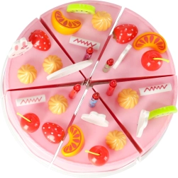 Ένα χαρούμενο ροζ σετ με τούρτα κοπής θα ενθουσιάσει τους μικρούς ζαχαροπλάστες από 3 ετών. Η τούρτα από 6 κομμάτια ενώνεται με αυτοκόλλητο βέλκρο και μπορεί να κοπεί με πλαστικό μαχαίρι. Ο πλούσιος εξοπλισμός με φρούτα, διακοσμήσεις και εργαλεία υποστηρίζει τη φαντασία, τα παιχνίδια ρόλων και τη λεπτή κινητικότητα.