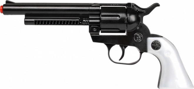 Το μαύρο σώμα, η λευκή λαβή και η μακριά κάννη δημιουργούν τον εμβληματικό στιλ ενός γουέστερν κολτ, ιδανικό για παιχνίδια και κοστούμια.
