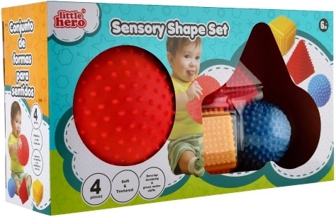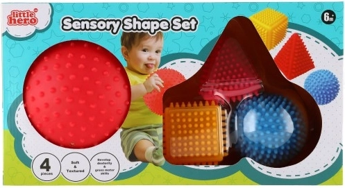 Το σετ αισθητηριακών γεωμετρικών σχημάτων LITTLE HERO θα ενθουσιάσει κάθε περίεργο παιδί. Οι ποικίλες επιφάνειες και τα έντονα χρώματα διεγείρουν τις αισθήσεις, ενώ η αγκαθωτή υφή διευκολύνει το κράτημα ακόμη και για τα πιο μικρά χεράκια. Χειριζόμενα τα επιμέρους σχήματα, τα παιδιά εξασκούν φυσικά τον συντονισμό χεριού–ματιού και μαθαίνουν να αναγνωρίζουν τις διαφορές μεταξύ σχημάτων και χρωμάτων.