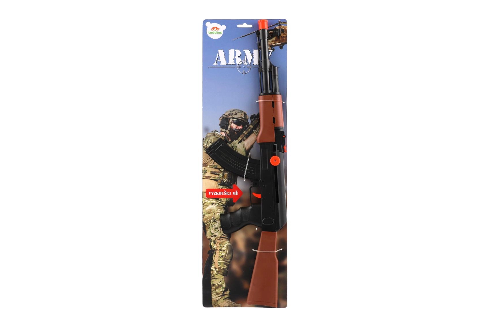 Το πλαστικό αυτόματο ARMY προσφέρει στα παιδιά άφθονη διασκέδαση χωρίς την ανάγκη μπαταριών. Ο χειρισμός είναι απλός – τεντώνετε το όπλο και είναι έτοιμο για δράση. Η ρεαλιστική εμφάνιση ενισχύει τη φαντασία και αναπτύσσει κινητικές και συντονιστικές δεξιότητες στο παιχνίδι «στρατιωτάκια».