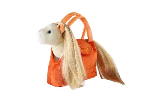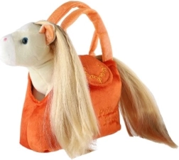 Αυτή η πορτοκαλί λούτρινη τσάντα κρύβει μέσα της ένα χαριτωμένο αλογάκι, που μπορεί να βγαίνει και να ξαναμπαίνει όποτε θέλετε. Η μακριά, απαλή χαίτη προσκαλεί για χτένισμα και πλεξίματα, καλλιεργώντας τη λεπτή κινητικότητα και τη δημιουργικότητα.