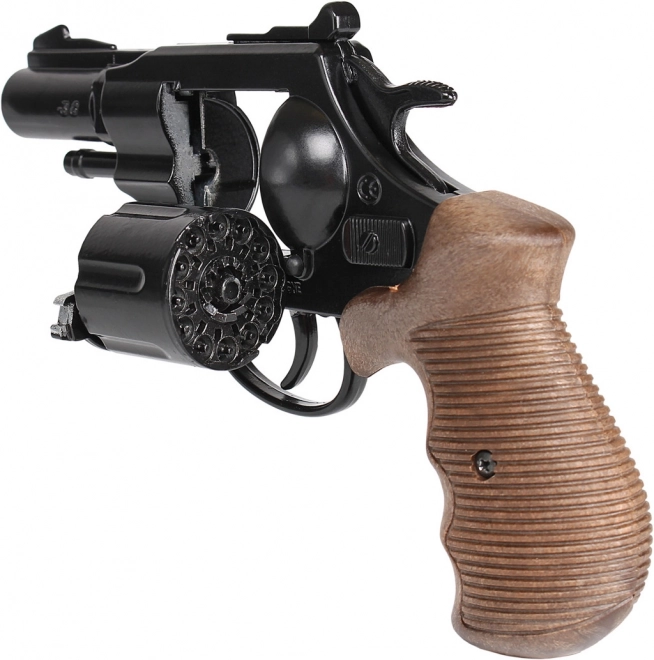 Ανακαλύψτε τη διασκέδαση με το αστυνομικό περίστροφο της σειράς Gold Collection. Το μοντέλο αυτό σε κομψό μαύρο χρώμα συνδυάζει στέρεο μεταλλικό σώμα, άνετη λαβή και ρεαλιστικές λεπτομέρειες όπως ο περιστρεφόμενος κύλινδρος. Είναι σχεδιασμένο για καψούλια (12 βολές), που προσφέρουν αυθεντικό ηχητικό εφέ, διατηρώντας την ασφάλεια του παιχνιδιού.