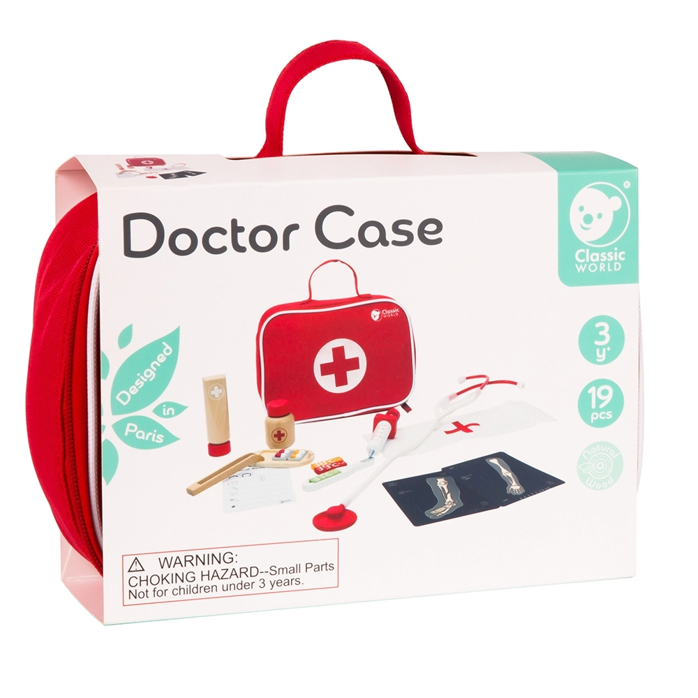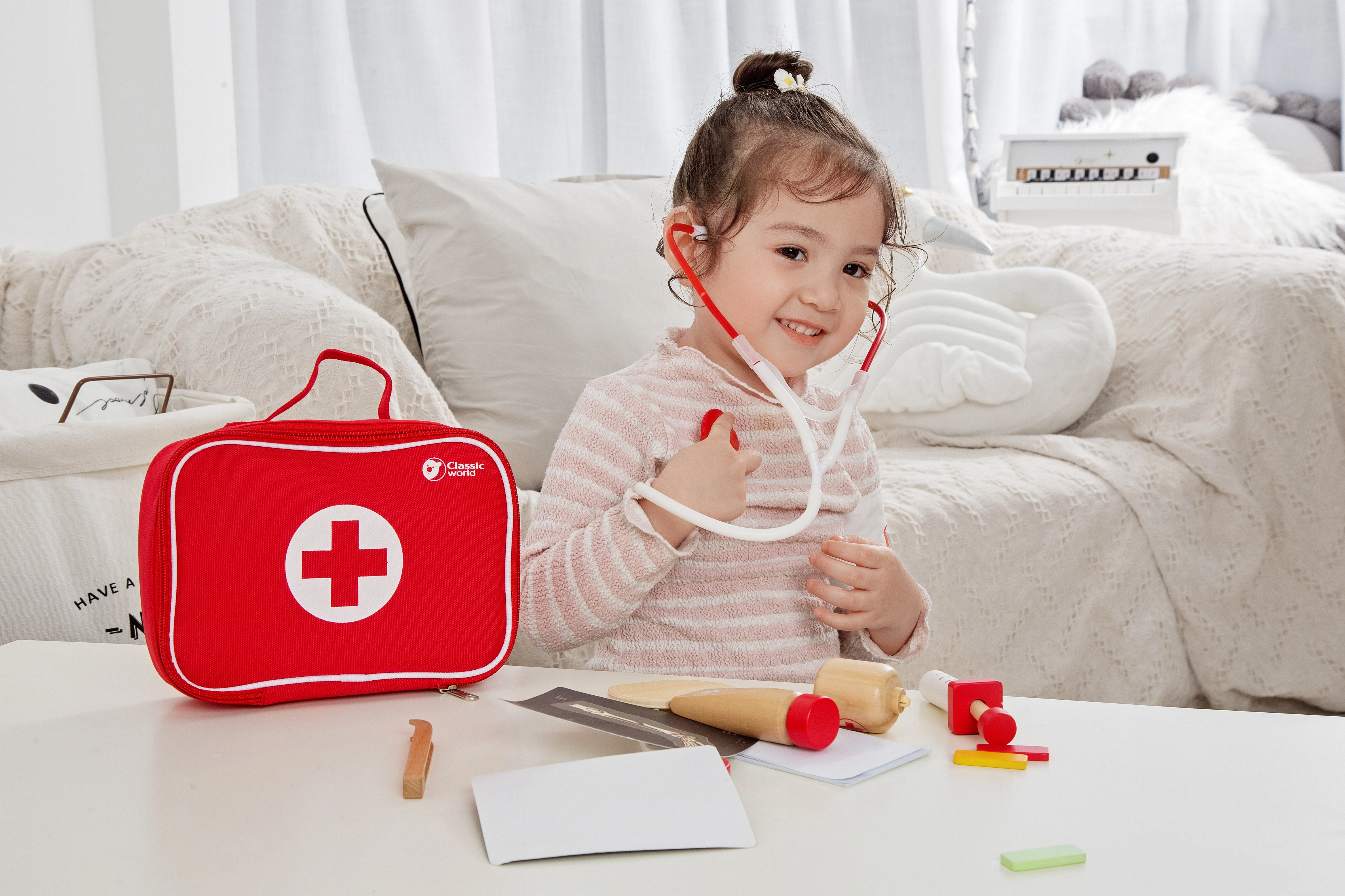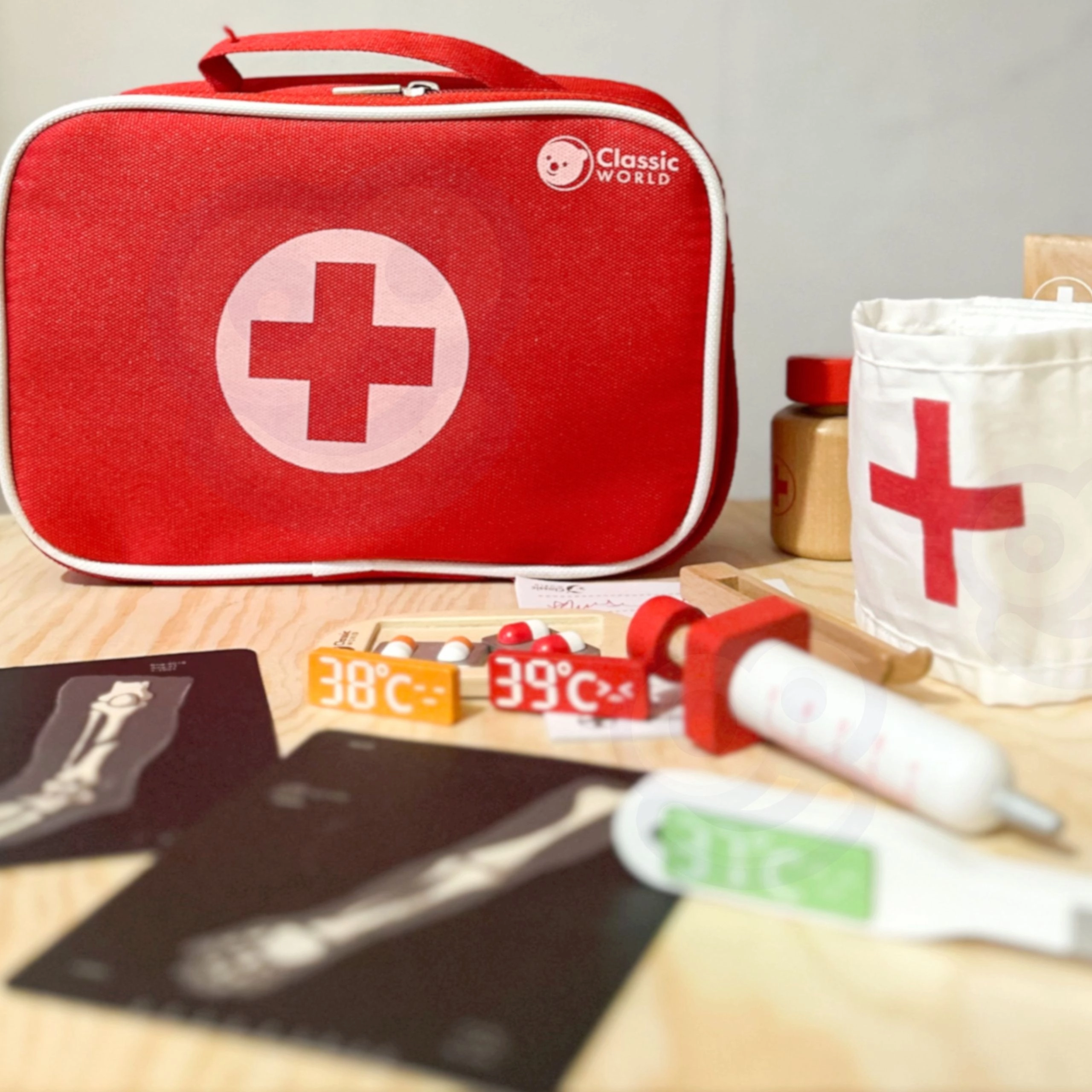 Το σετ της Classic World περιλαμβάνει ό,τι χρειάζεται ένας μικρός γιατρός για παιχνίδι ρόλων. Τα παιδιά μπορούν να ακούν τους καρδιακούς παλμούς των «ασθενών» τους (λούτρινα αρκουδάκια, κούκλες) με το στηθοσκόπιο, να «μετρούν» τη θερμοκρασία με το θερμόμετρο, να «κάνουν» ενέσεις ή να δίνουν τα απαραίτητα «φάρμακα». Το παιχνίδι γιατρού δεν είναι μόνο ένα αγαπημένο παιχνίδι ρόλων, αλλά και μάθημα ενσυναίσθησης και συμπόνιας, σημαντικό για τις κοινωνικές σχέσεις. Αυτό το σετ ενισχύει τη φαντασία και διδάσκει την επίλυση προβλημάτων.