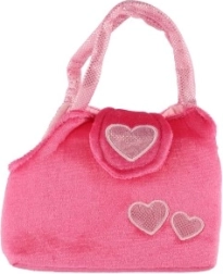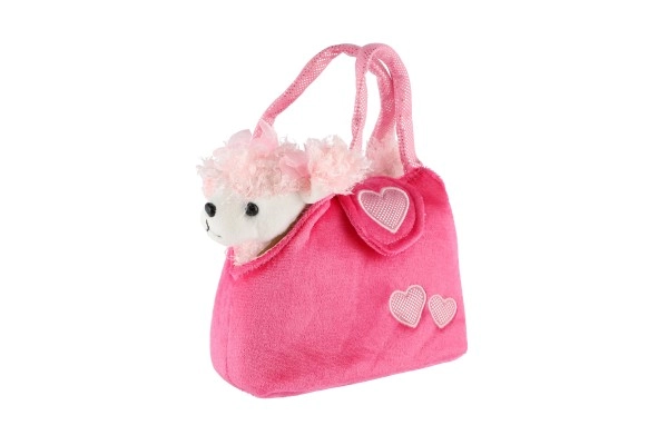Χαρούμενο ροζ τσαντάκι με καρδούλες και απαλό σκυλάκι με κορδελάκι που θα ενθουσιάσει κάθε μικρή φίλη των ζώων.