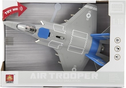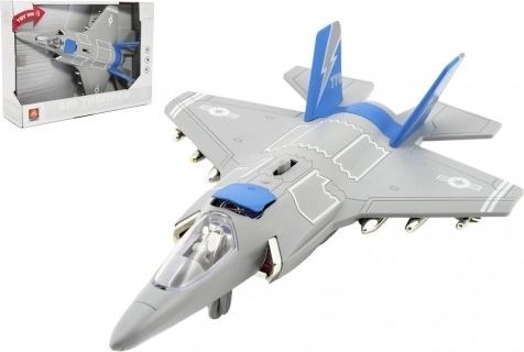 Αυτό το πλαστικό μαχητικό είναι ιδανικό παιχνίδι για μικρούς στρατιώτες και πιλότους. Είναι κατασκευασμένο από ποιοτικά υλικά και προορίζεται για παιδιά από 3 ετών. Χάρη στα ρεαλιστικά φωτεινά και ηχητικά εφέ προσφέρει πολλή διασκέδαση.