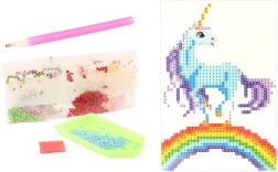 Στη συσκευασία θα βρείτε ό,τι χρειάζεστε για τη δημιουργία: εφαρμογέας (πένα), κερώδες μαξιλαράκι για εύκολη λήψη των πετραδιών, δισκάκι για διαλογή και σακουλάκια με πολύχρωμα πετραδάκια. Το σετ είναι κατάλληλο για παιδιά από 5 ετών και ενισχύει την υπομονή, τη λεπτή κινητικότητα και τη συγκέντρωση.