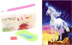 Η ζωγραφική με διαμάντια είναι μια διασκεδαστική και χαλαρωτική τεχνική, όπου με τη βοήθεια του εφαρμογέα μεταφέρετε μικρά “διαμάντια” σε αυτοκόλλητο καμβά σύμφωνα με τον προεκτυπωμένο κωδικό. Τα πετραδάκια είναι ταξινομημένα σε σακουλάκια με γράμματα και σύμβολα, ώστε να ξέρετε ακριβώς πού ανήκει κάθε κομμάτι. Το αποτέλεσμα είναι μια λαμπερή εικόνα 10 × 15 cm, που θα διακοσμήσει το δωμάτιό σας ή θα αποτελέσει ένα όμορφο δώρο.