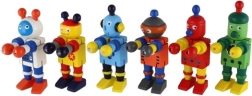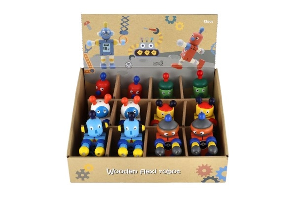 Αυτά τα πολύχρωμα ξύλινα ρομπότ είναι ιδανικά για τα πρώτα οικοδομικά και παιχνιδιάρικα σενάρια ρόλων. Χάρη στους ελαστικούς συνδέσμους, λυγίζουν εύκολα, κρατούν πόζες και ενθαρρύνουν τα παιδιά να δημιουργούν τις δικές τους ιστορίες. Το ανθεκτικό ξύλο και οι λείες άκρες εξασφαλίζουν ασφαλή και ευχάριστη χρήση ακόμη και για τους μικρότερους.