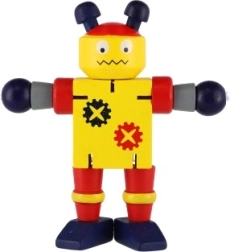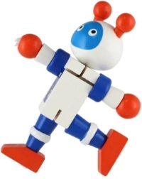 Χαριτωμένο ξύλινο ρομπότ ύψους 12 εκ. που θα ενθουσιάσει κάθε μικρό εξερευνητή. Χάρη στα ελαστικά λαστιχάκια έχει κινητά άκρα και κεφάλι, ώστε τα παιδιά να μπορούν εύκολα να το καθίσουν, να το σταθούν ή να το διαμορφώσουν σε διάφορες πόζες. Το παιχνίδι υποστηρίζει τη λεπτή κινητικότητα, την δημιουργικότητα και τη φαντασία. Κατάλληλο από 18 μηνών.
