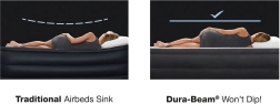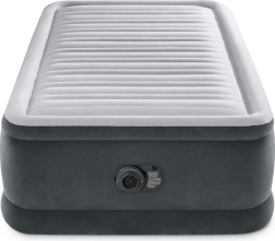 Το φουσκωτό κρεβάτι Intex Deluxe είναι εξαιρετική επιλογή για φιλοξενούμενους, ενοικιαζόμενους χώρους ή διακοπές. Το υπερυψωμένο ύψος των 46 cm διευκολύνει το σηκώμα και η μαλακή, φλοκαριστή επιφάνεια προσφέρει ευχάριστη αίσθηση και αξιόπιστο κράτημα του σεντονιού. Οι εσωτερικές ενισχύσεις Fiber-Tech από ανθεκτικές πολυεστερικές ίνες διατηρούν το στρώμα σταθερό και με σωστό σχήμα, ενώ το σύστημα Dura-Beam κατανέμει ομοιόμορφα το βάρος και υποστηρίζει τη σωστή ευθυγράμμιση της σπονδυλικής στήλης.