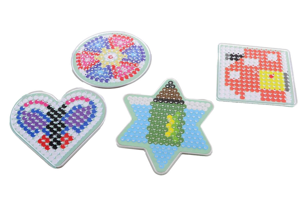 Οι σιδερόχρηστες χάντρες είναι ένα αγαπημένο εργαλείο για την ανάπτυξη της υπομονής, του συντονισμού ματιού–χεριού και της δημιουργικής σκέψης. Με τα πατρόν θα συνθέσετε εύκολα καρδιές, αστέρια, κύκλους ή τετράγωνα και μετά το σιδέρωμα θα αποκτήσετε σταθερές, πολύχρωμες δημιουργίες.