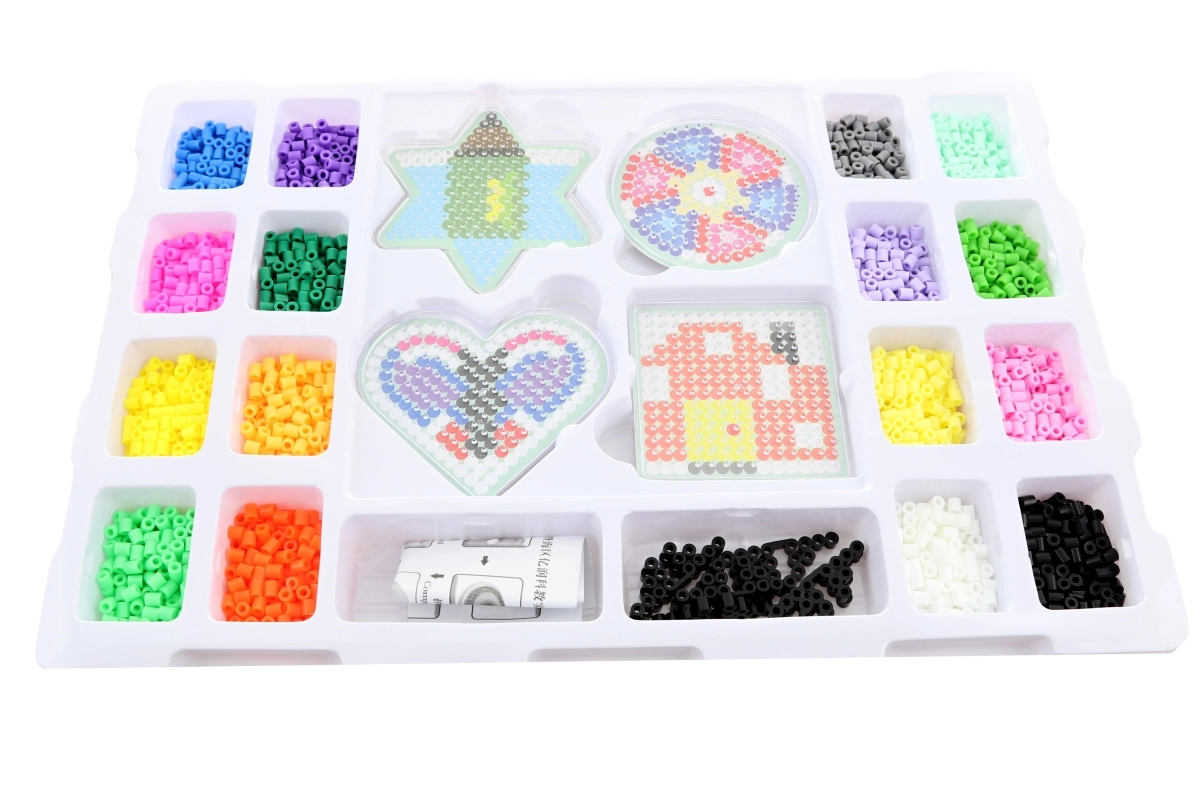 Περίπου 3000 χάντρες σε πολλά έντονα χρώματα επιτρέπουν τη δημιουργία λεπτομερών μωσαϊκών και ευφάνταστων σχεδίων – από απλά σχήματα έως περίτεχνες εικόνες.