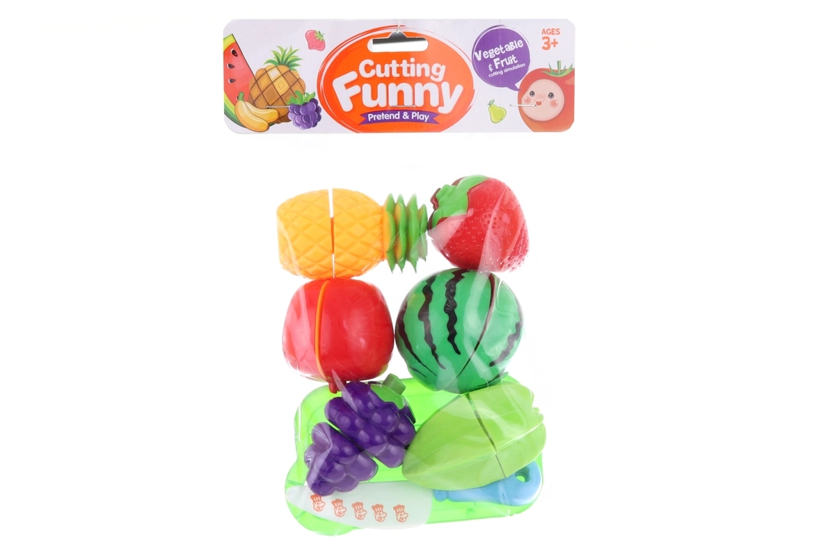 Διασκεδαστικό πλαστικό σετ φρούτων και λαχανικών για κοπή που προσφέρει σε παιδιά από 3 ετών υπέροχο παιχνίδι μαγείρων. Τα μεμονωμένα κομμάτια είναι ενωμένα στο κέντρο με αυτοκόλλητο βέλκρο, ώστε να μπορούν να κόβονται επανειλημμένα και να επανασυνδέονται. Υποστηρίζει τη λεπτή κινητικότητα, τον συντονισμό ματιού–χεριού και αναπτύσσει τη φαντασία στο παιχνίδι ρόλων σπιτιού. Η συσκευασία περιλαμβάνει 14 τεμάχια και είναι ιδανική ως δώρο.