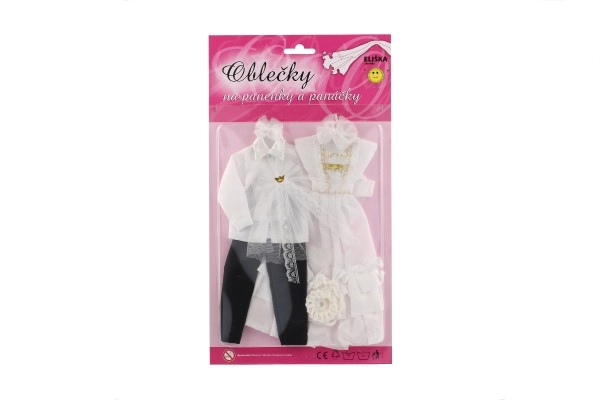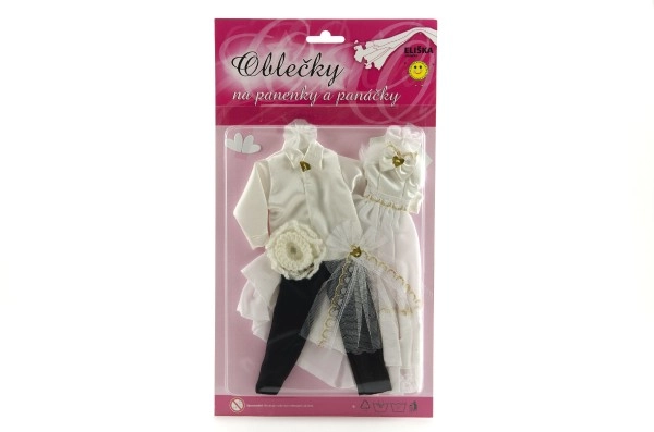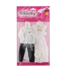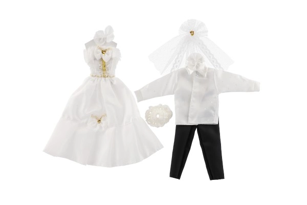 Με αυτό το μοναδικό σετ γαμήλιου ντυσίματος, οι κούκλες σας μπορούν να γίνουν οι σταρ κάθε φανταστικού γάμου! Τα ρούχα περιλαμβάνουν λεπτομερώς δουλεμένο φόρεμα και κομψό κοστούμι, που χαρίζουν στο γαμήλιο παραμύθι σας μαγεία και λάμψη.