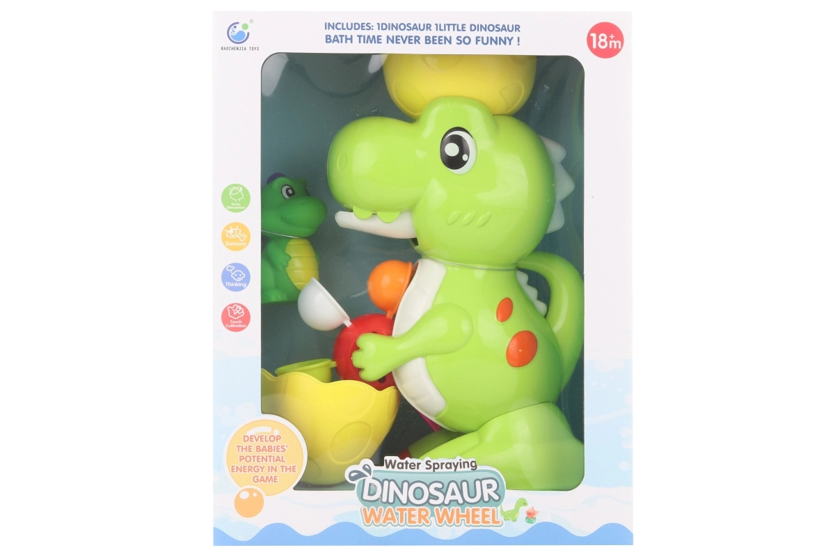 Κάντε το μπάνιο των παιδιών πιο διασκεδαστικό με αυτόν τον χαρούμενο νερόμυλο σε σχήμα δεινόσαυρου. Χάρη στις βεντούζες, στερεώνεται εύκολα στον τοίχο της μπανιέρας ή στα πλακάκια και το νερό θέτει σε κίνηση τις φτερωτές για παιχνίδια με νερό. Ιδανικό για παιδιά από 18 μηνών, με διαστάσεις δεινόσαυρου περίπου 15 × 24 × 8 cm και πρακτική στερέωση σε λεία επιφάνεια.