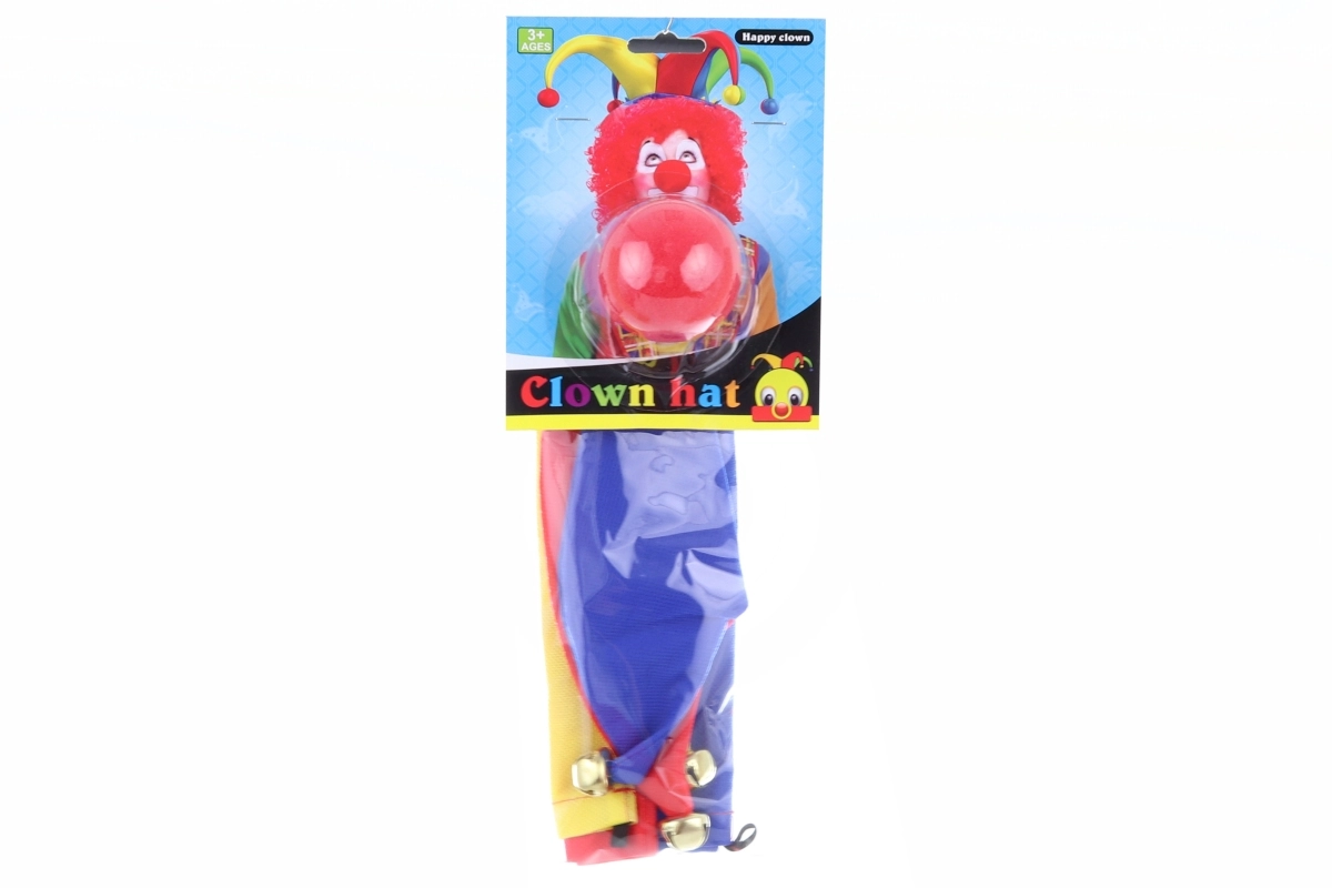 Αυτό το πολύχρωμο σετ μεταμορφώνει τον καθένα μέσα σε δευτερόλεπτα σε έναν αξιαγάπητο κλόουν. Το μαλακό υφασμάτινο καπέλο σε έντονα χρώματα με μεταλλικά κουδουνάκια προσθέτει παιχνιδιάρικο ηχητικό εφέ στη στολή, ενώ η κόκκινη αφρώδης μύτη εφαρμόζει εύκολα και μένει άνετα στη θέση της.