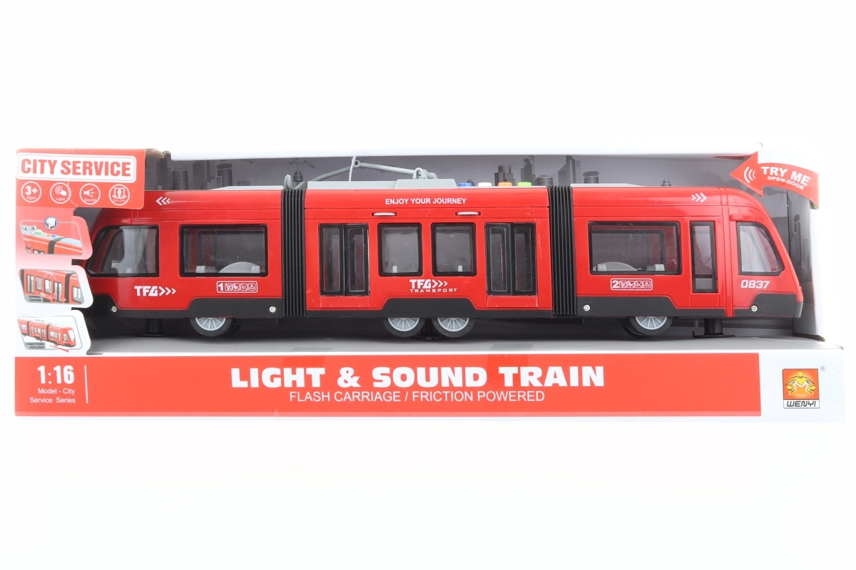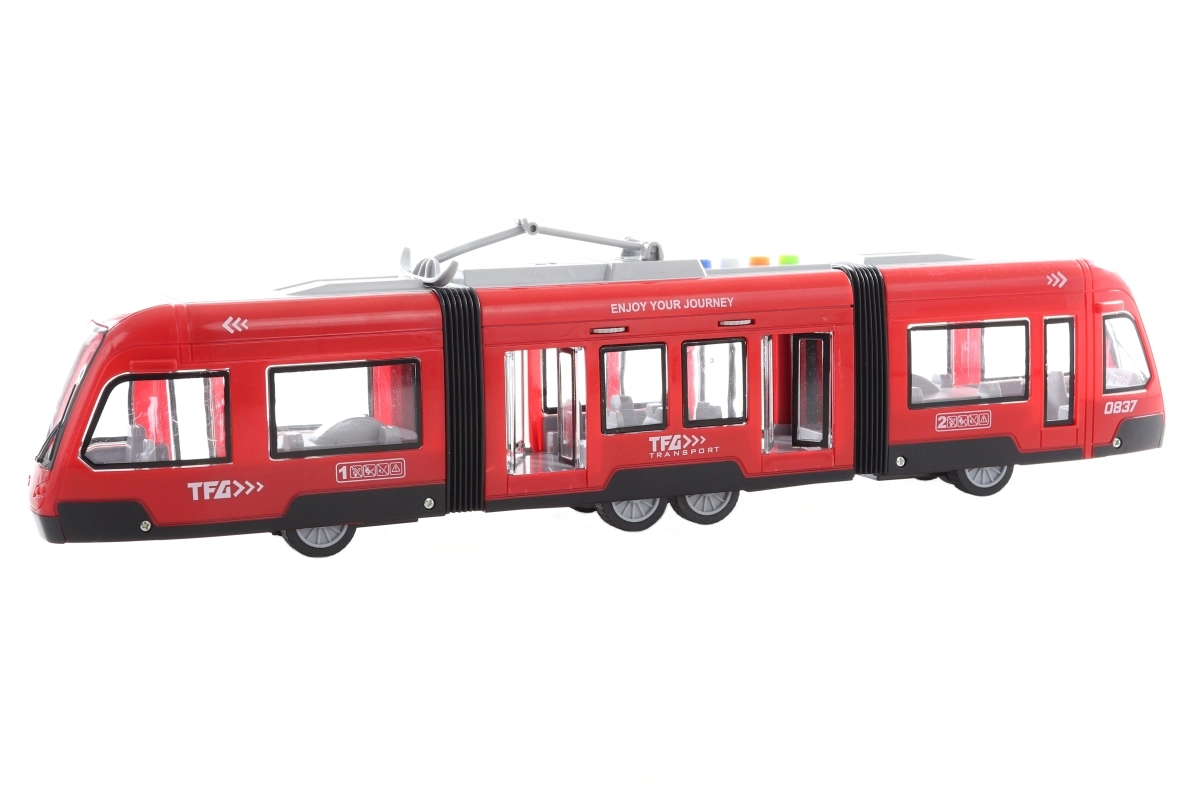 Σας παρουσιάζουμε το υπέροχο κόκκινο τραμ με μπαταρίες, ιδανικό για κάθε μικρό λάτρη των αστικών συγκοινωνιών. Αυτό το μοντέλο είναι κατασκευασμένο από ποιοτικό πλαστικό και προσφέρει φωτεινά και ηχητικά εφέ, που χαρίζουν μια ρεαλιστική εμπειρία διαδρομής με τραμ.