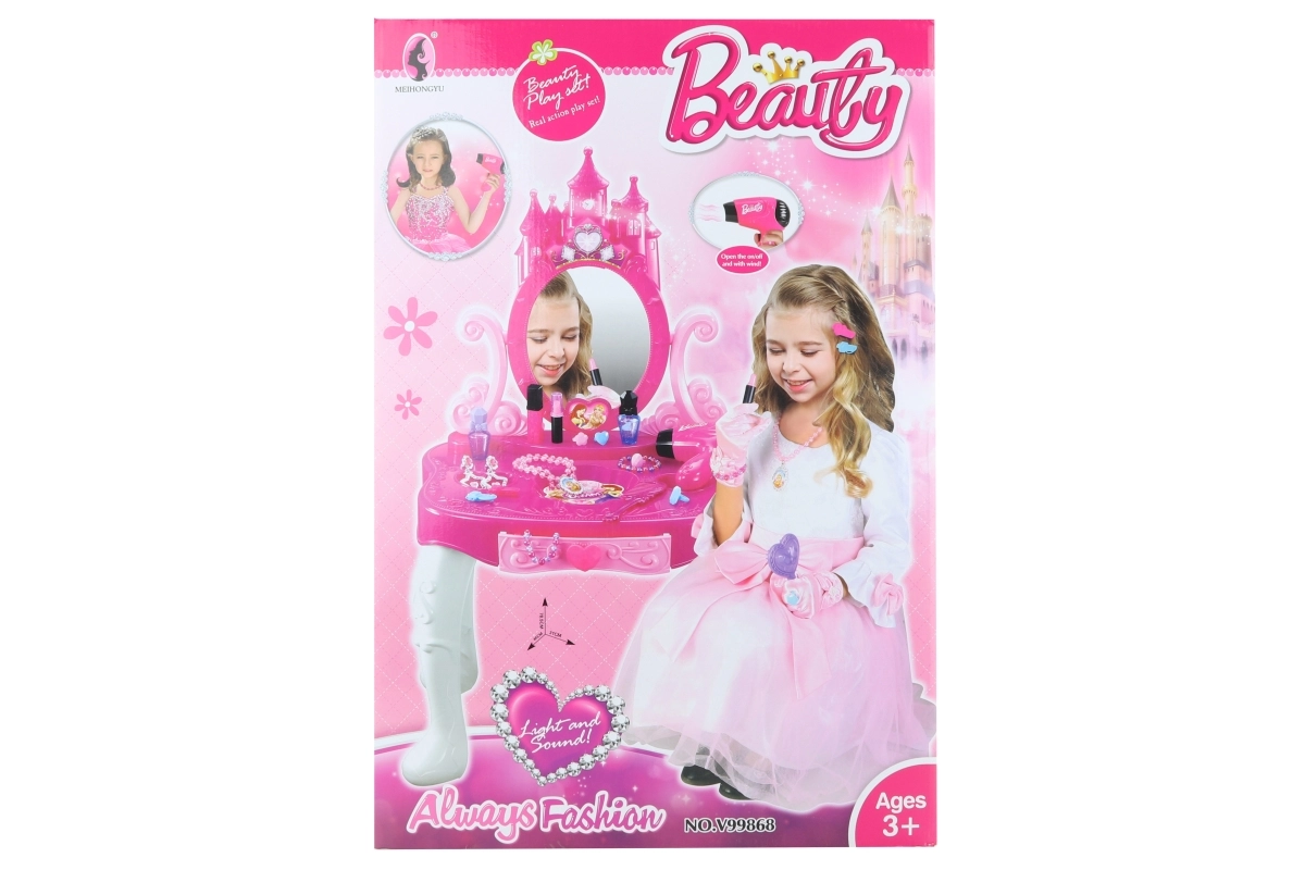 Με ένα απλό πάτημα κουμπιού, το τραπεζάκι φωτίζεται και παίζει μελωδία, προσδίδοντας αυθεντικότητα στο παιχνίδι. Το σετ περιλαμβάνει επίσης ένα άνετο πλαστικό σκαμπό. Ό,τι χρειάζεται το παιδί σας για παιχνίδι ομορφιάς είναι εξασφαλισμένο!