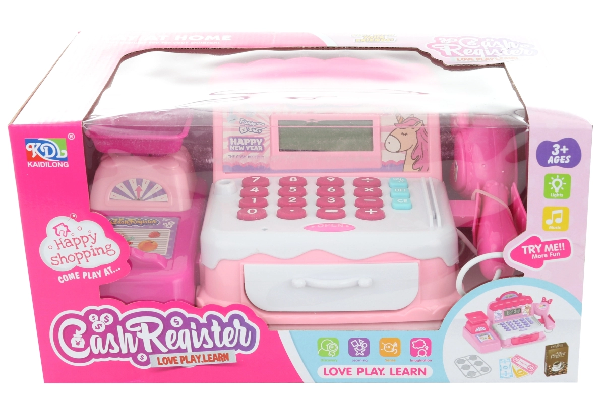 Το χαρούμενο ροζ ταμείο με μονόκερο μετατρέπει κάθε παιδική γωνιά σε μικρό μαγαζάκι. Τα παιδιά μπορούν να «σκανάρουν» προϊόντα, να ζυγίζουν, να υπολογίζουν και να αποθηκεύουν με ασφάλεια τα κερδισμένα χρήματα στο συρτάρι. Τα ρεαλιστικά ηχητικά και φωτεινά εφέ, καθώς και η οθόνη προσδίδουν αξιοπιστία στο παιχνίδι και υποστηρίζουν τη φυσική εκμάθηση αριθμών και απλών υπολογισμών.