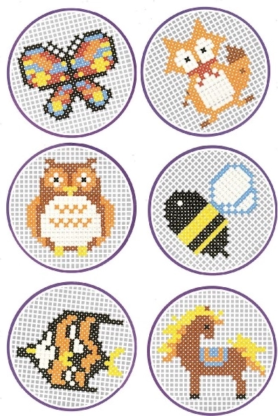 - 1× πλαστική πινακίδα, 1× χάρτινο πρότυπο, 1× βελόνα, πολύχρωμες κλωστές βαμβακιού